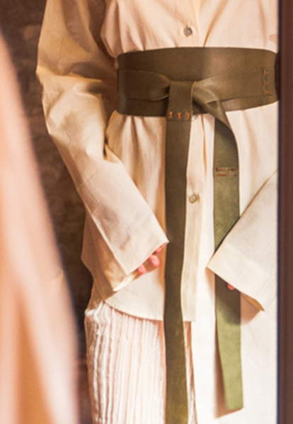 Cinturón de piel delgado con Bordado en hilo con cera.
