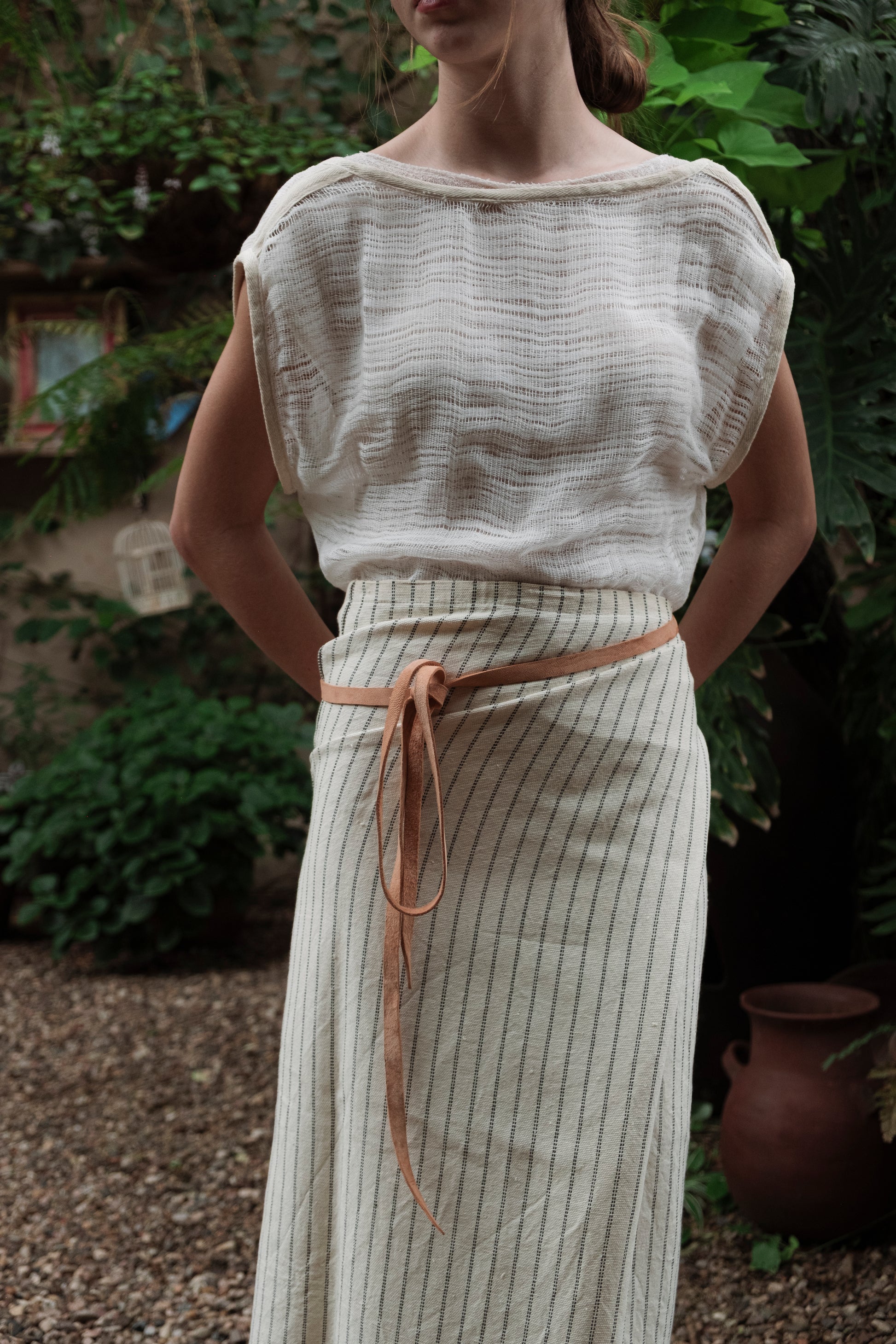 Pareo largo telar de pedal líneas negras con tientos de piel