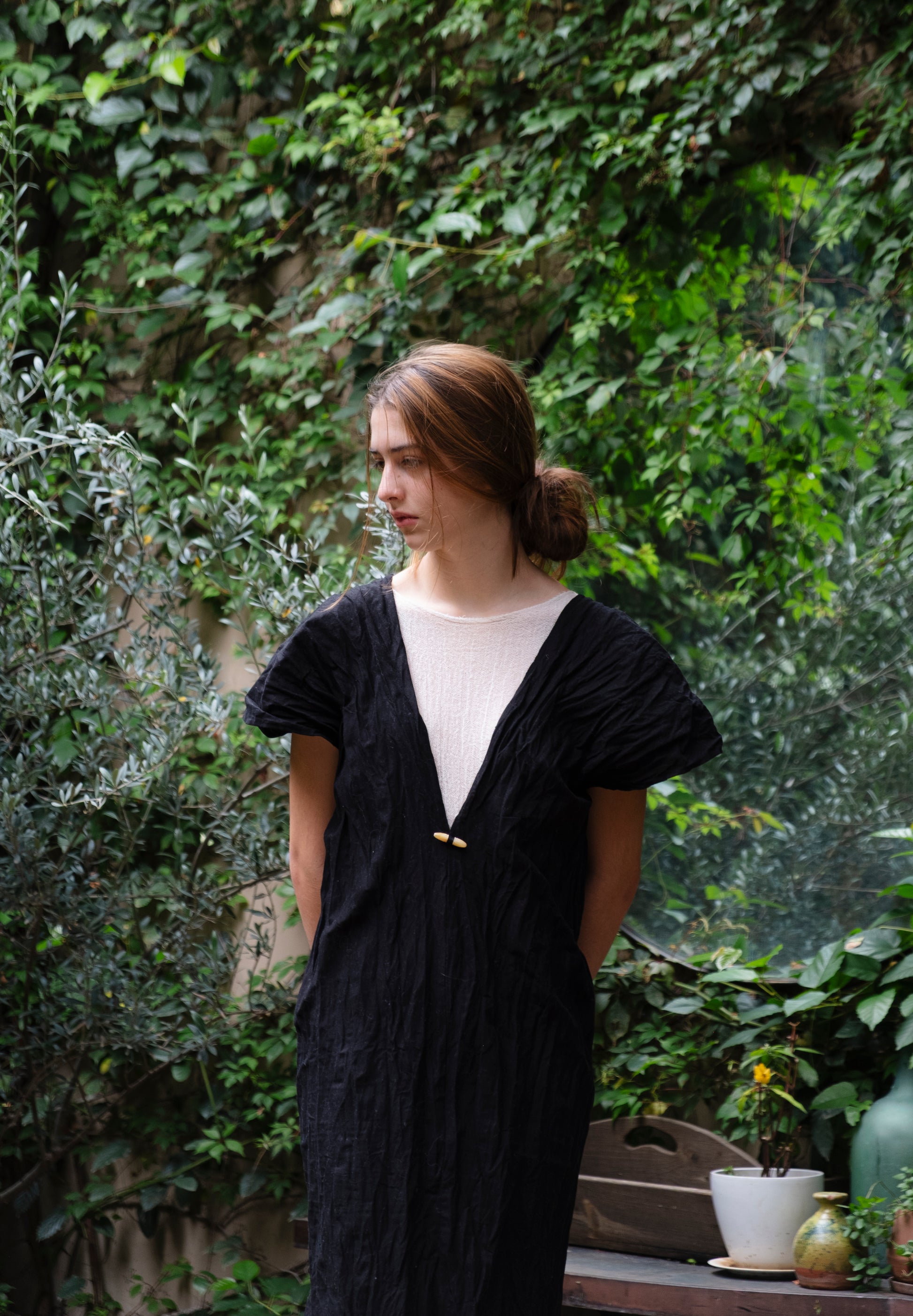 Vestido muselina efecto arrugado botón charro