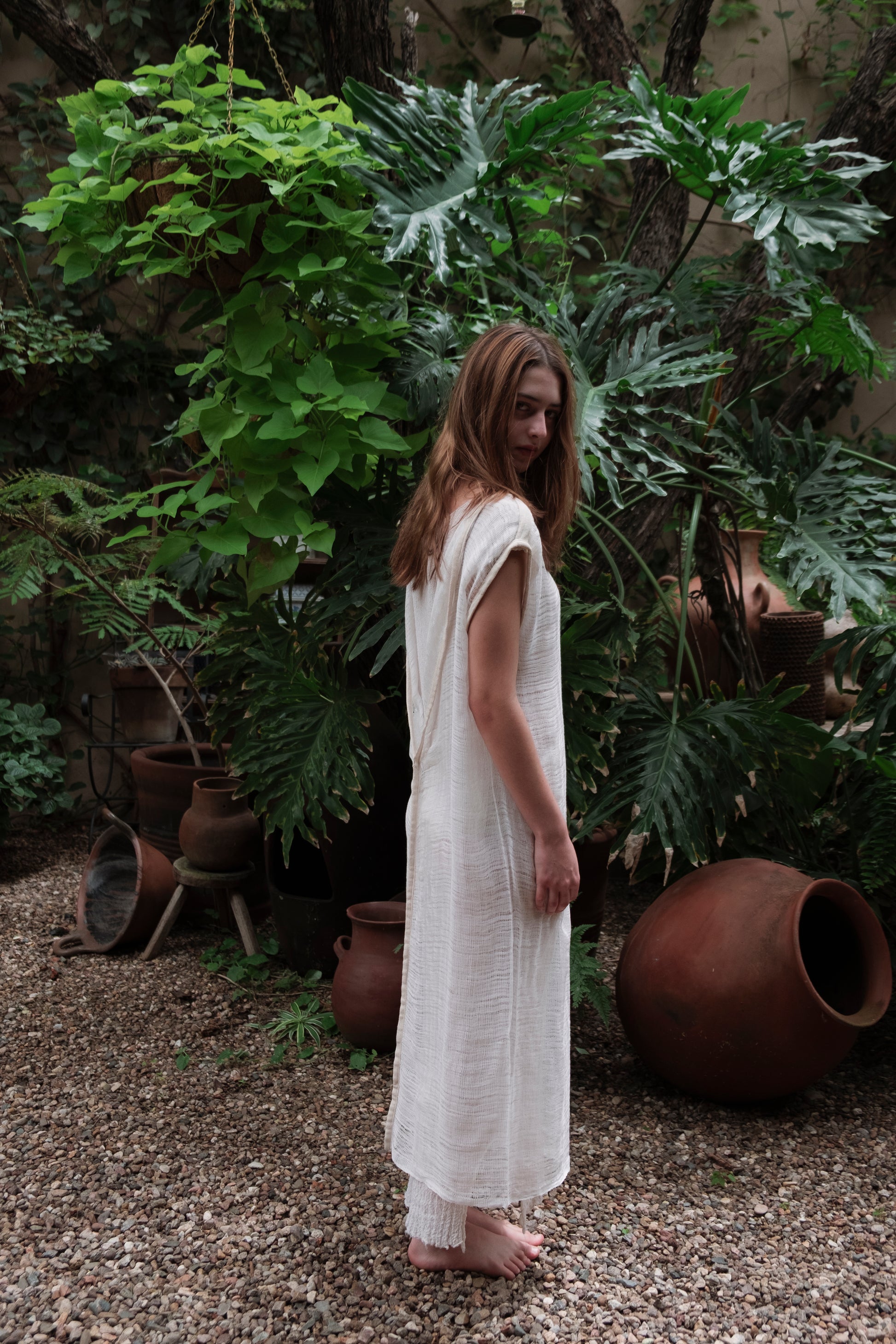 Vestido telar de pedal abierto, escote espalda